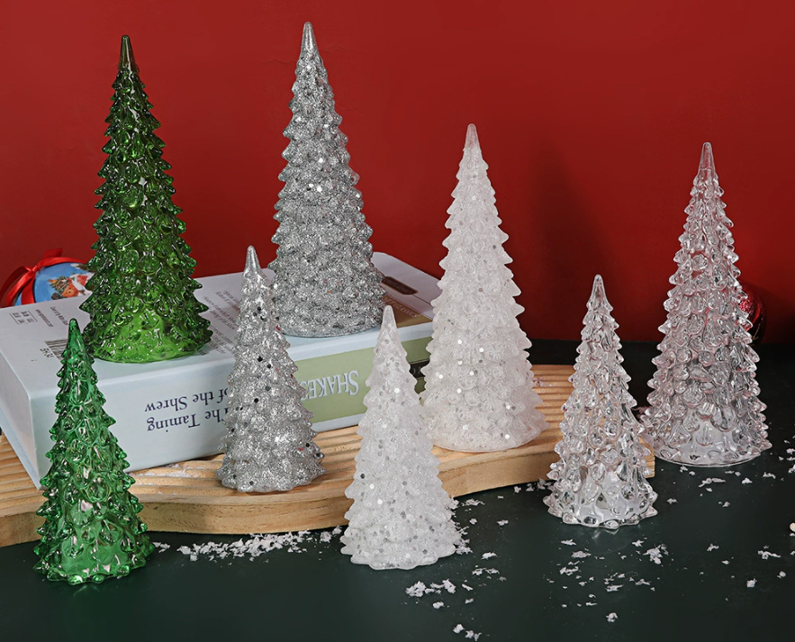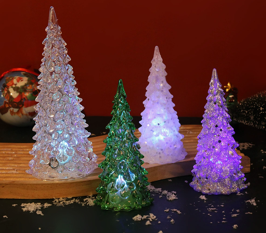 Crystal Diamond Acrylic Christmas Tree LED Night Light – Festive Tabletop Decoration with Ambient Glow for Dining Room, Holiday Parties & Seasonal Gift Ideas